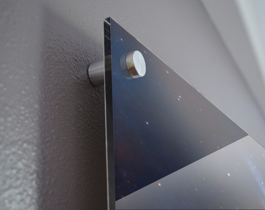 Printed to the edge - Ready to hang - provided with 4 premium polished aluminum stand off ( wall screws and mounting hardware provided )