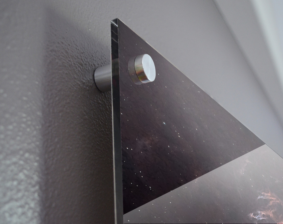 Printed to the edge - Ready to hang - provided with 4 premium polished aluminum stand off ( wall screws and mounting hardware provided )